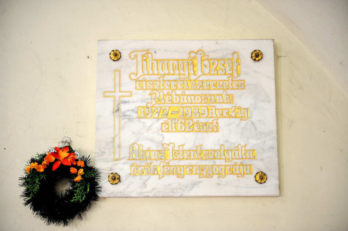 Tihanyi József plébános márvány emléktáblája