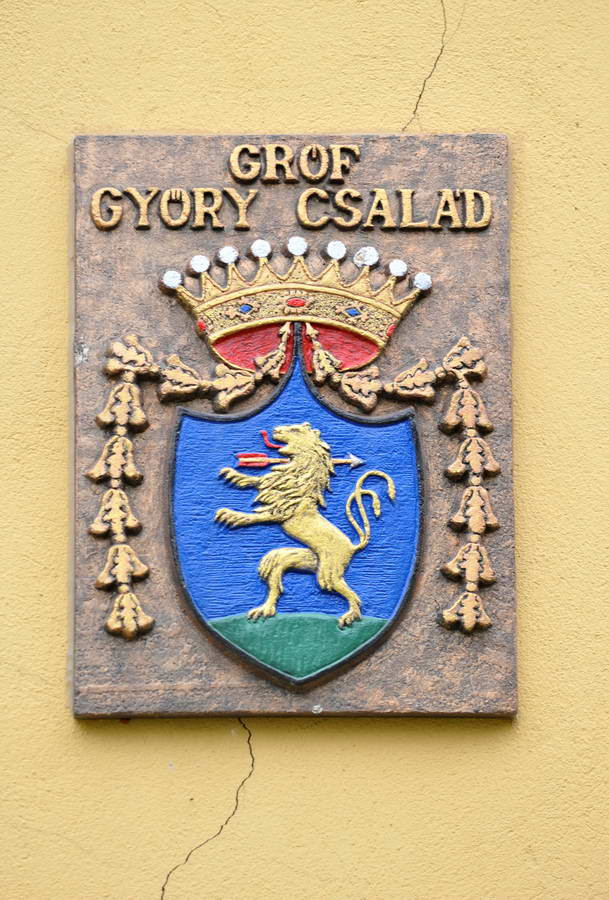 Templom - külső látnivalóka gróf Győry család, a templom építtetőinek címre a templom külső falán
